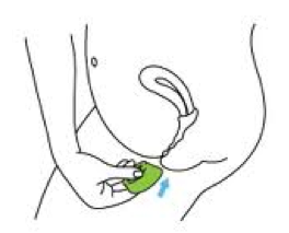 - Now that you know where to place the cap, separate the labia with one hand and squeeze the outer edge of the cap with the other hand. With the cervical cap’s dome facing down, push it far into the vagina with the long brim side entering first.